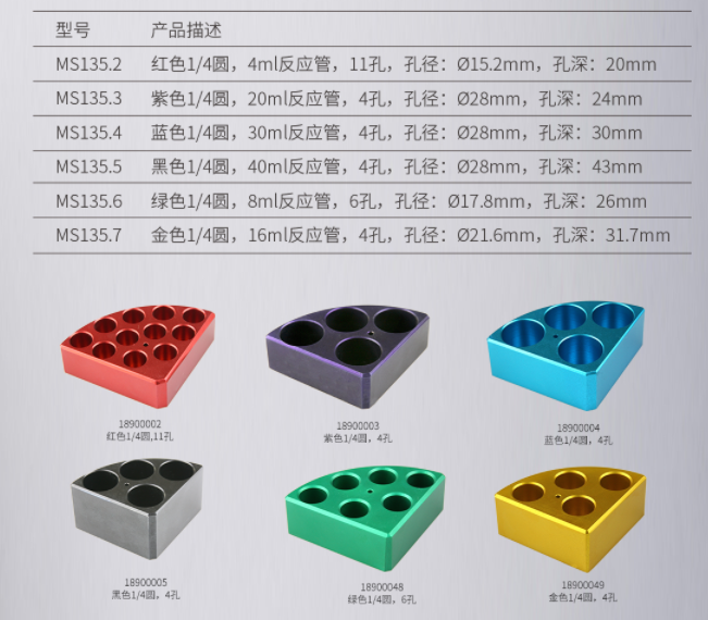7寸方盤磁力攪拌器可配用1/4圓鋁合金加熱塊,用于多種樣品的平行反應,適用4-16ml試管。耐高溫和化學腐蝕。